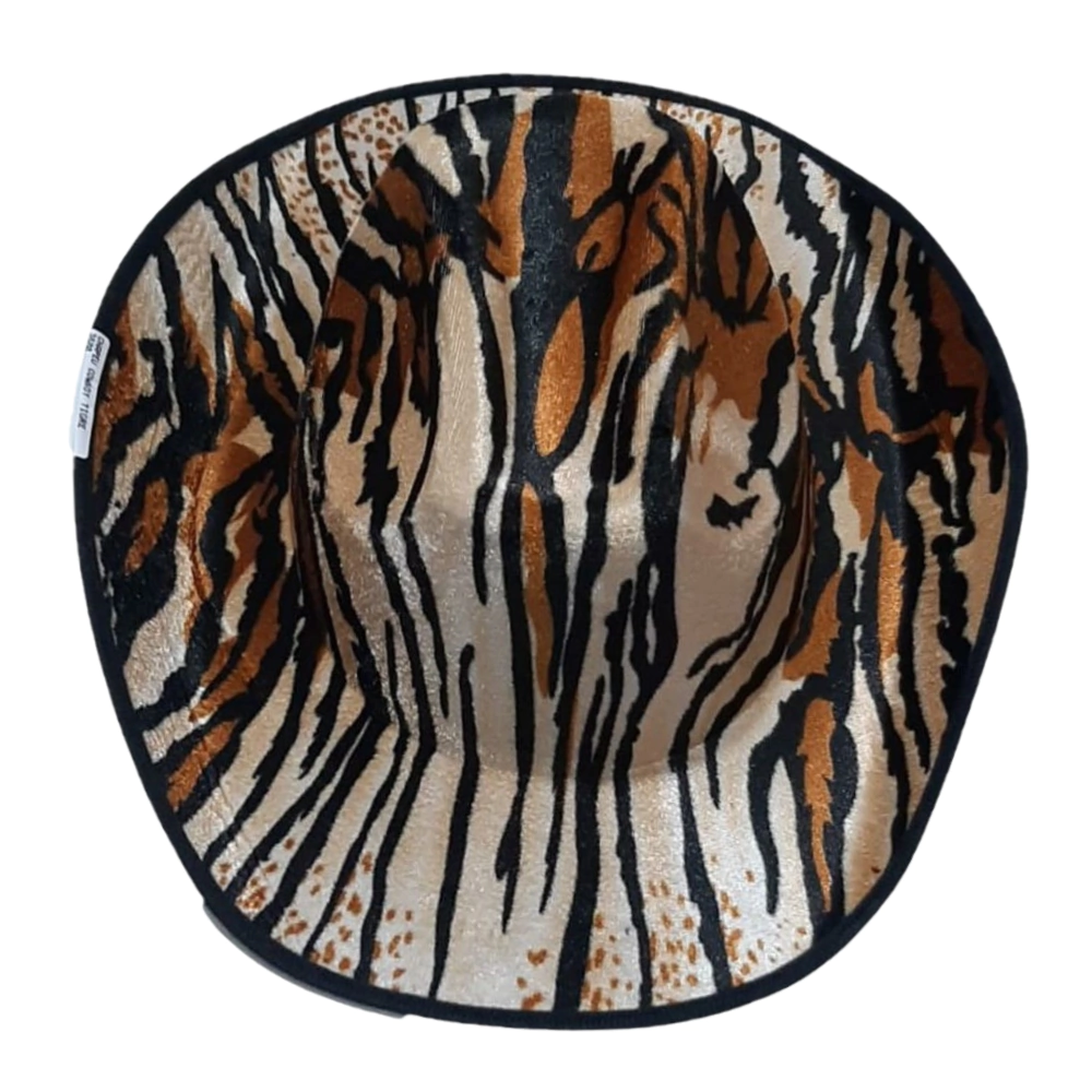 Características: Chapéu country com estampa de tigre confeccionado no tecido leve e macio para mais conforto. Acessório ideal para usar em festas temáticas, carnaval, halloween e muito mais.