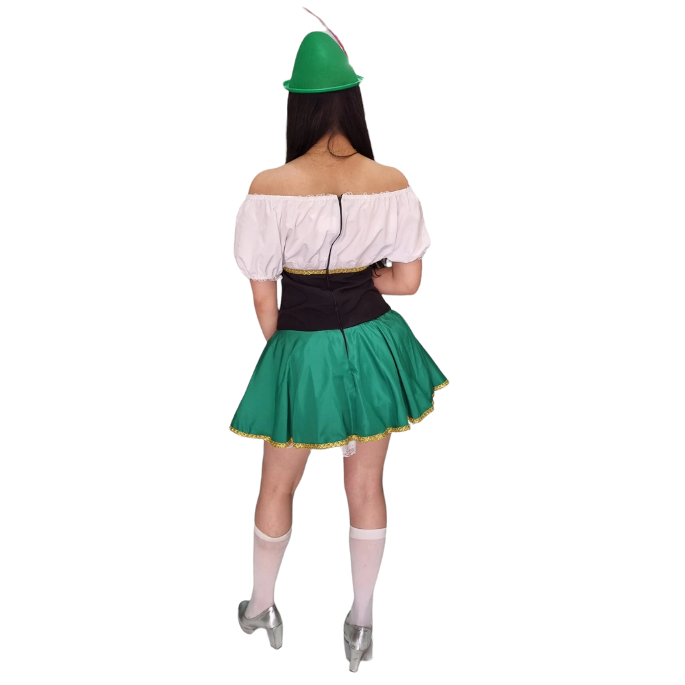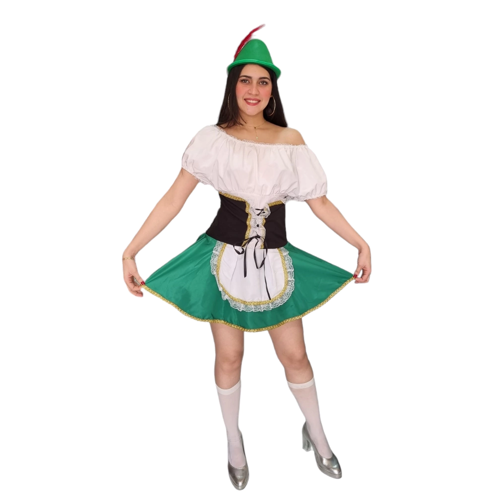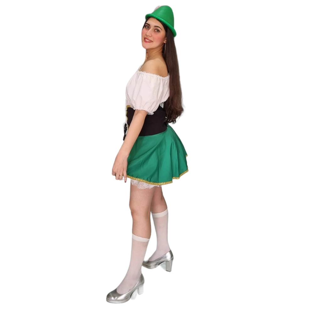 Características: Vestido evasê curto modelo ombro ciganinha, detalhe fixo estilo corset na parte frontal e avental com acabamento em renda, possui elástico na cintura proprocionando conforto, abertura nas costas em zíper.
