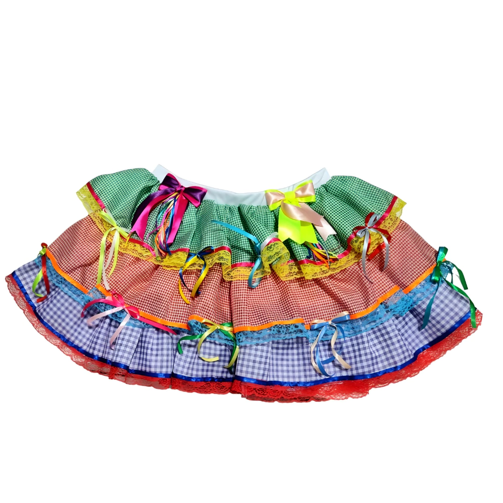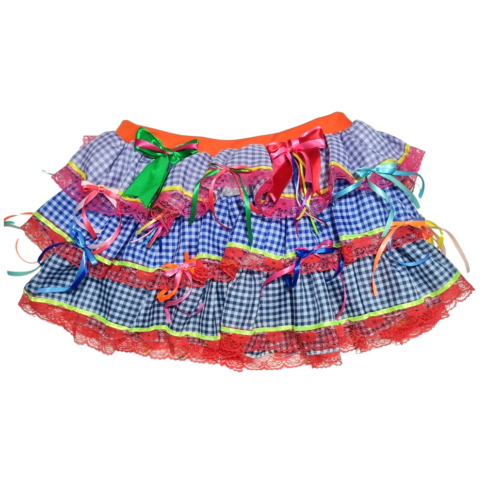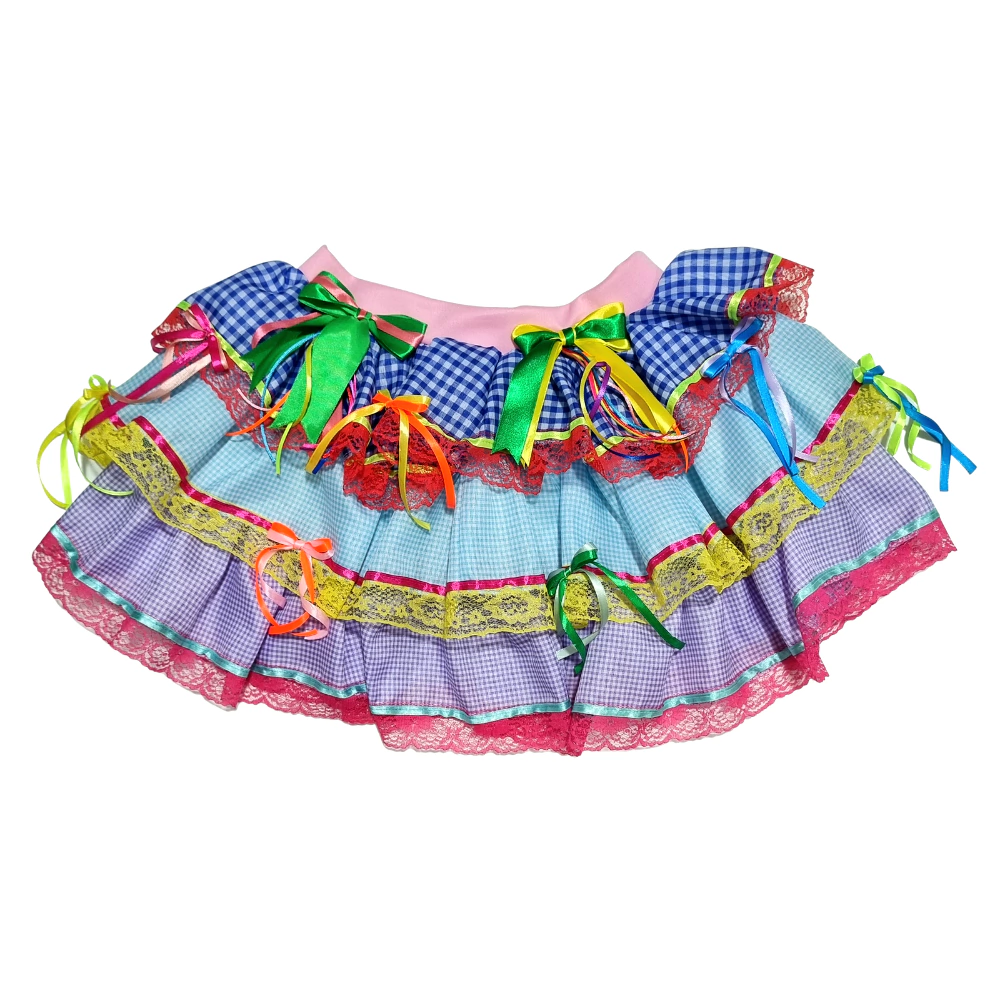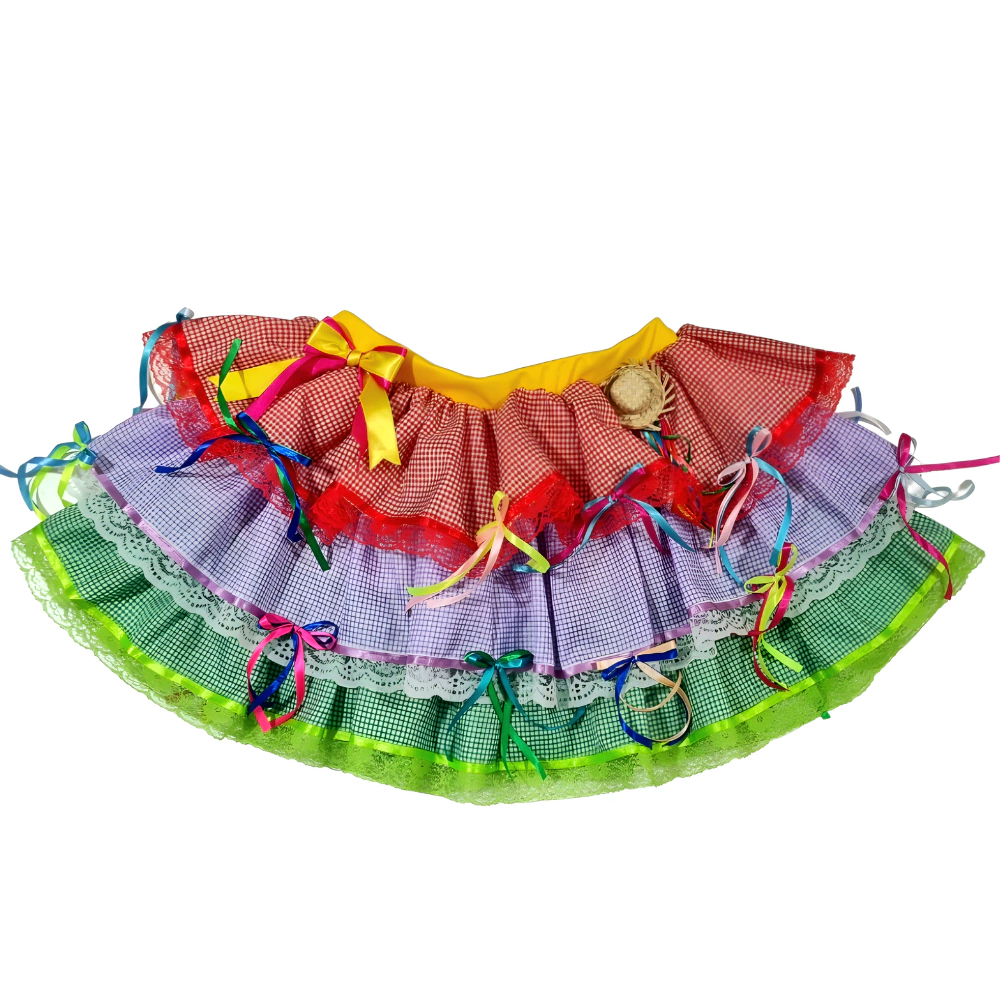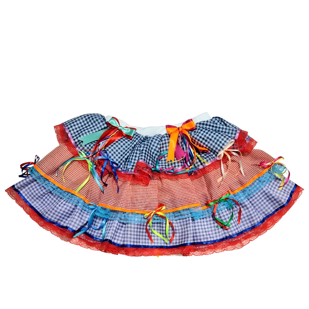 Características: Saia com babados e elástico de 4 cm na cintura para melhor ajuste e conforto. rica em detalhes, renda na barra e laços de fitas deixando a peça linda e alegre assim como as festas juninas.