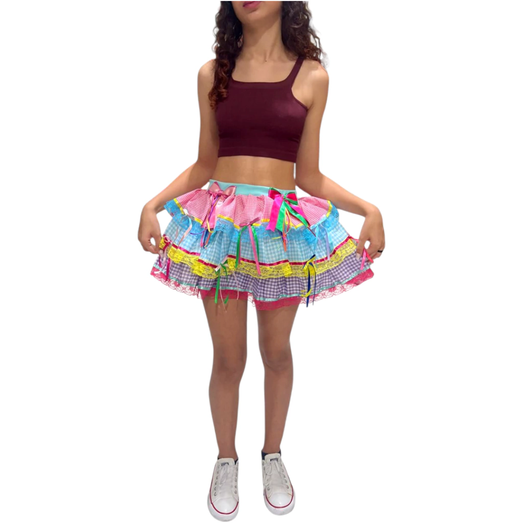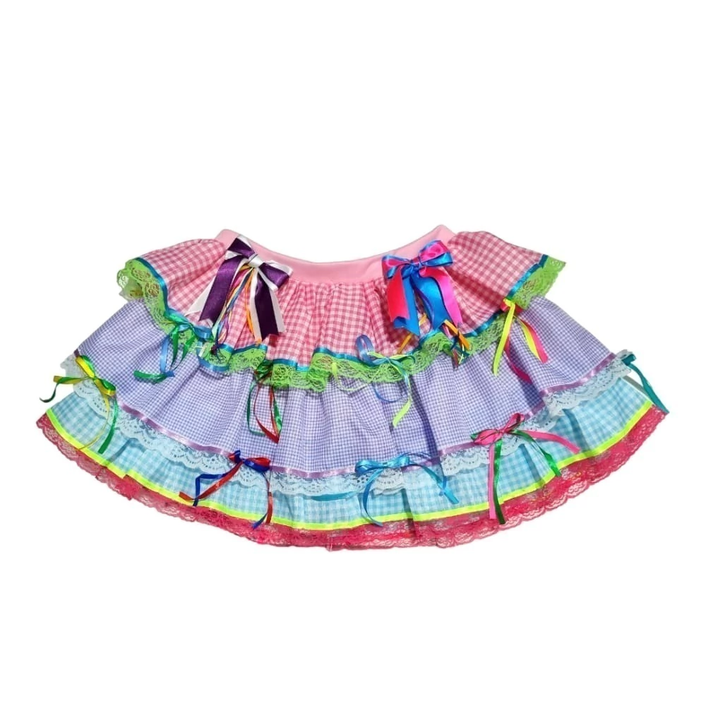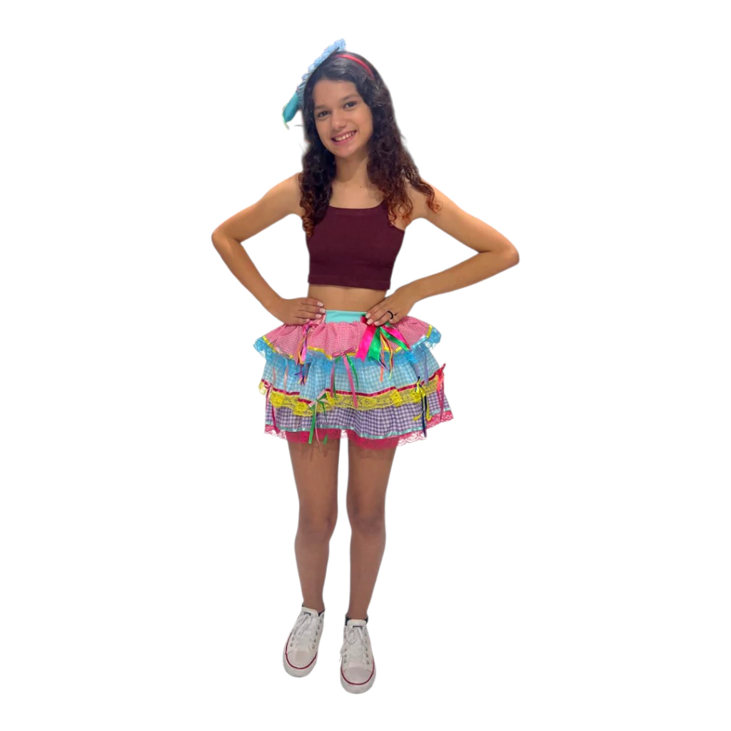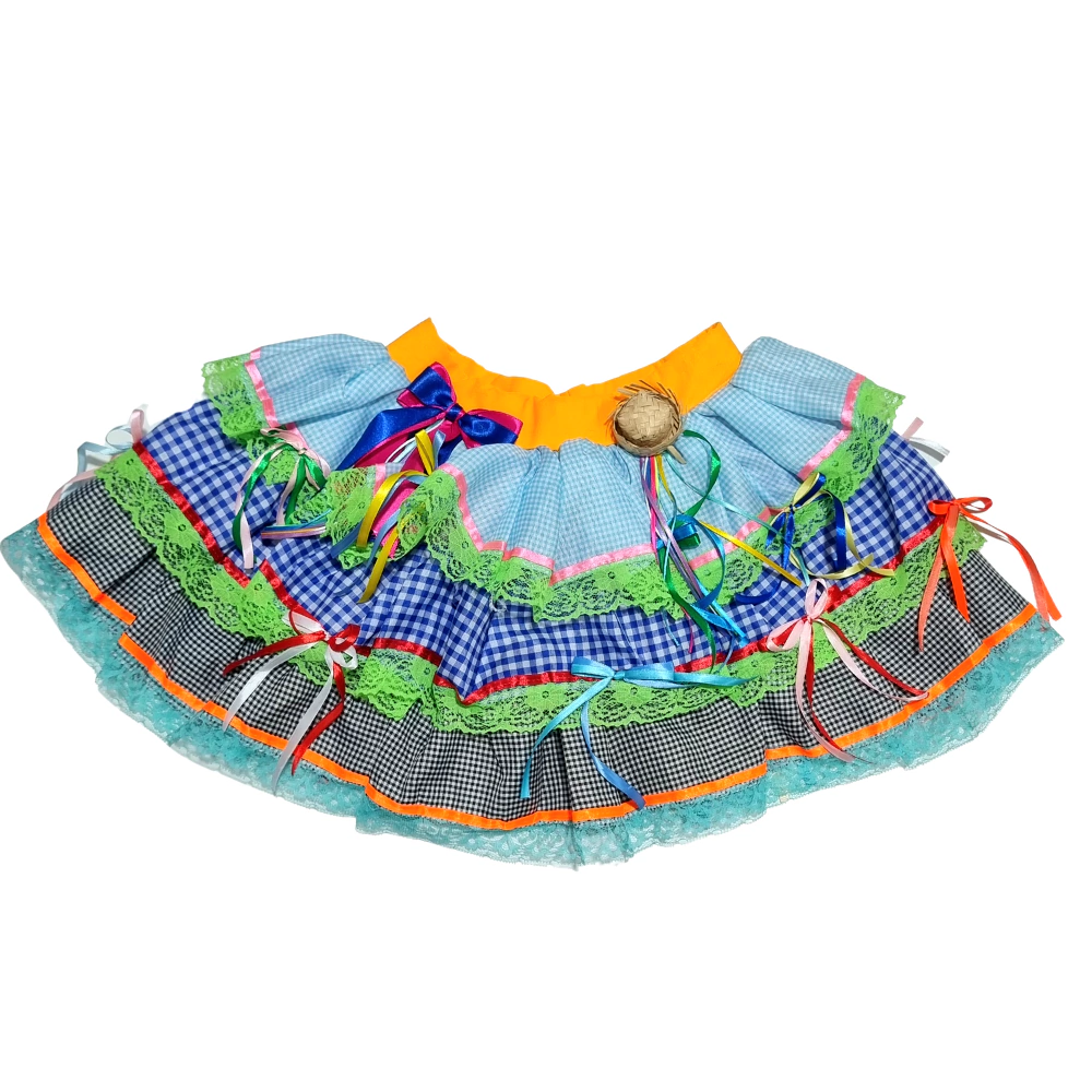Características: Saia com babados e elástico de 4 cm na cintura para melhor ajuste e conforto. rica em detalhes, renda na barra e laços de fitas deixando a peça linda e alegre assim como as festas juninas.